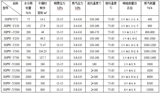 壓力噴霧干燥塔JGPW-Y型壓力噴霧干燥機組主要技術參數…